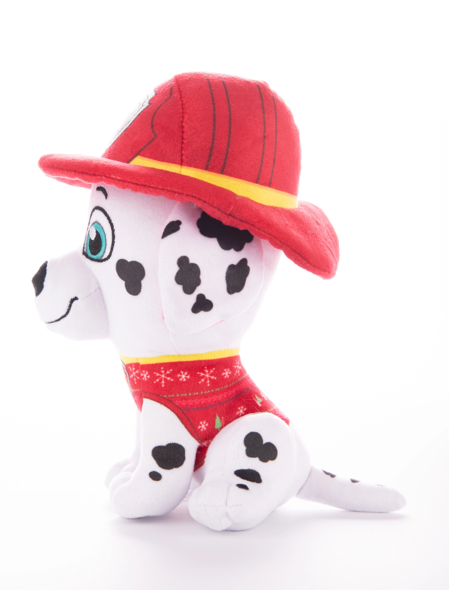 Adorable plush Dalmatian Marshall from the popular PAW PATROL series arrives in a stylish Christmas sweater. Soft construction, pleasant material, and a height of 21 cm make him a perfect buddy for cuddling and imaginative play. An ideal gift for kids and a charming winter room decoration.