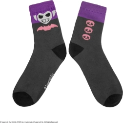 Thanks to the elastic cuff, the socks stay in place, while the reinforced toe and heel add durability. The one-size fit adapts easily, and the prints of favorite characters — 8‑Bit, Rico, and Mortis — give your outfit a playful style.