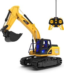 A realistic 1:24 scale RC excavator featuring 5-channel control, a 360° rotating undercarriage, bucket lift and lower, and light effects. With a rechargeable Li‑ion battery and a 40 MHz controller offering a range of 10–15 m, enjoy plenty of fun indoors and outdoors.