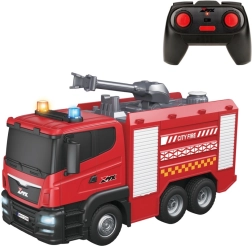 Enjoy realistic action with this detailed RC fire truck in 1:24 scale. It offers a working water cannon, 2.4 GHz interference‑free control, light and sound effects, and a range up to 30 meters. An ideal interactive toy for young firefighters aged 3 and up.