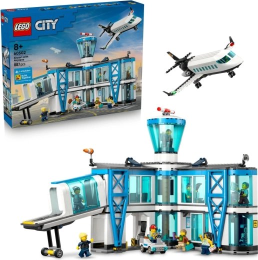Includes 9 minifigures – pilot, air traffic controller, airport staff, and passengers with accessories (suitcases, newspaper, coffee). The set encourages creative play, develops imagination and fine motor skills, and can be connected with other LEGO City sets for an even larger play world.