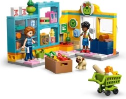 Discover the fun of shopping with the LEGO Friends Heartlake City Convenience Store set. This colorful set with 176 pieces features a realistic grocery store with a yellow-and-blue facade, a checkout, trolley, basket, and a recycling station. It includes mini-dolls Autumn and Zac and a dog figure, along with a rich selection of food accessories for creative play.