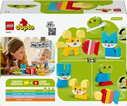 Discover the perfect first building set for little ones – LEGO DUPLO Cute Creative Pets 3-in-1. With 24 large bricks, children from 18 months can easily build a dog, a cat, and a bird. It supports fine motor skills, color recognition, and creative play thanks to simple stacking and friendly printed faces.