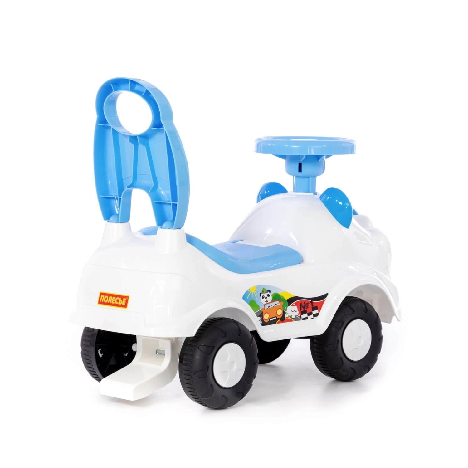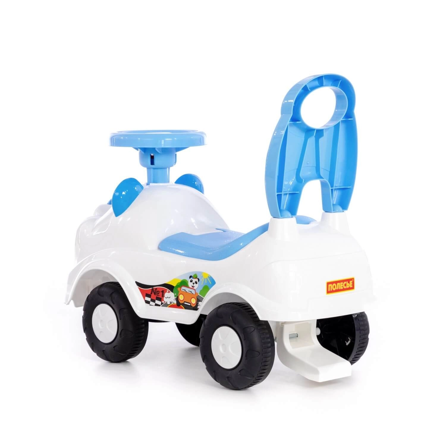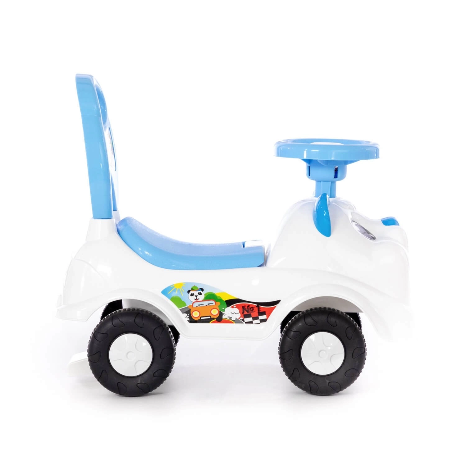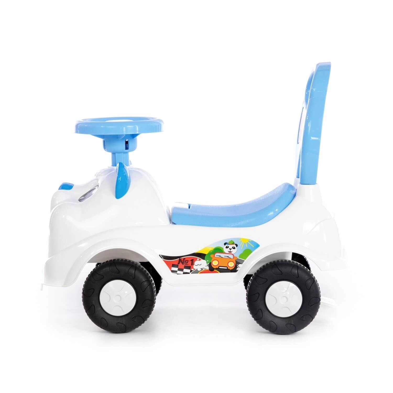 This stylish blue ride-on is designed for children’s first independent movement using their feet. Rounded edges increase safety during play, and the integrated backrest provides both support and comfort. Riding the toy helps develop gross motor skills, coordination, and stability.
