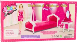 A stylish bedroom furniture set for fashion dolls approximately 29 cm tall. Includes a bed, a vanity table with mirror, and a stool. Durable plastic construction, a pink-and-white design, and safe rounded shapes support creative play and the development of fine motor skills.