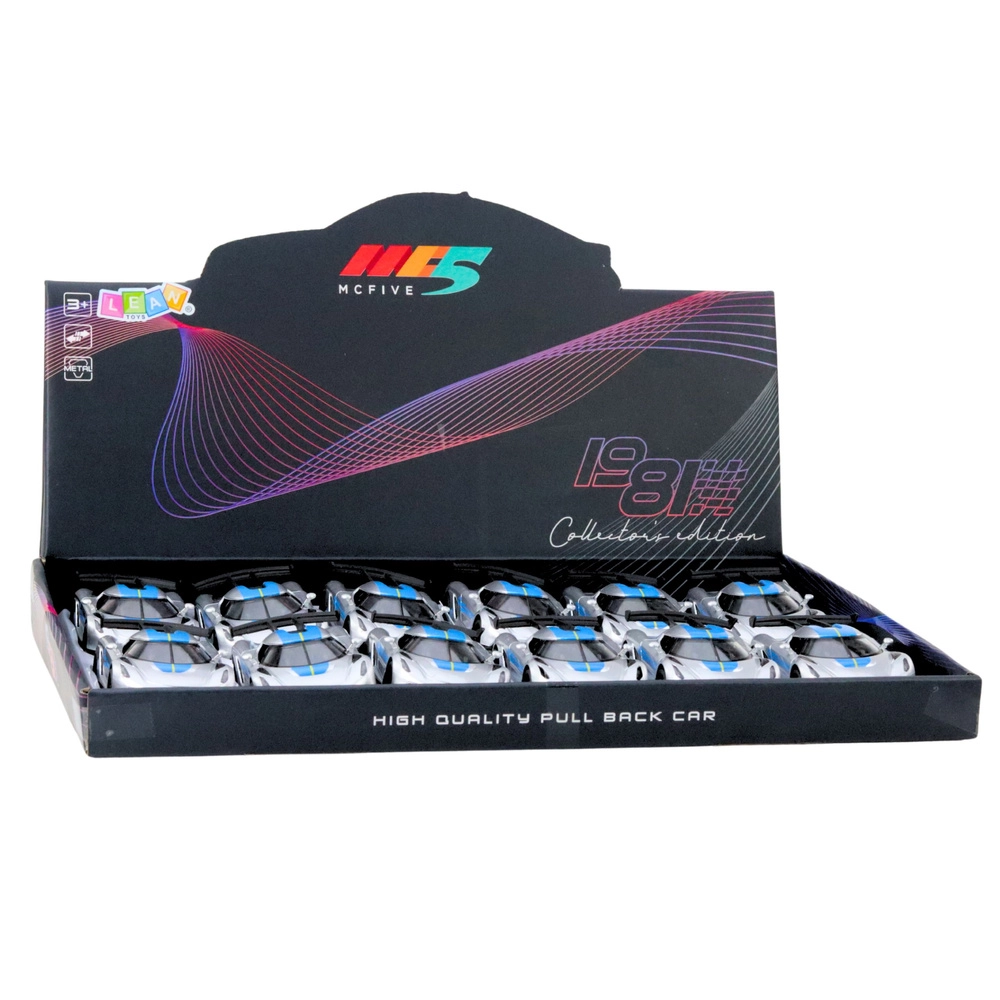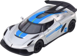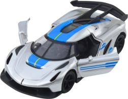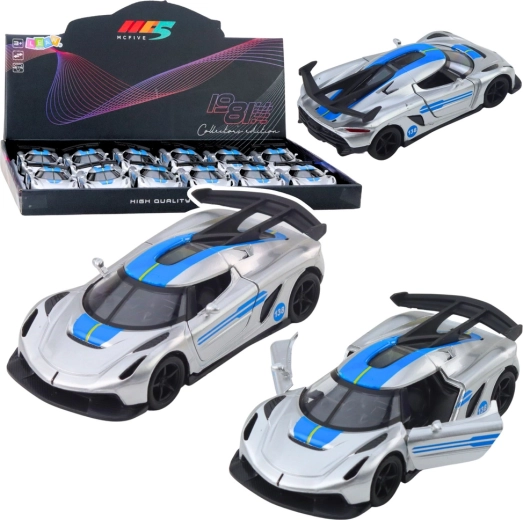 A stylish metal sports toy car in 1:32 scale that delights young racers and collectors alike. It features a metal body, opening doors, and a pull-back drive for dynamic play. The attractive silver design with blue accents and detailed workmanship ensure a realistic look and lots of fun at home or on the go.