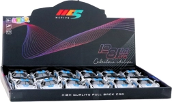 Discover a compact racing toy car that stands out with its durable metal body and modern sporty look. Just pull it back slightly and it will surge forward thanks to the pull-back drive. Opening doors add authenticity and invite a closer look at the detailed interior.