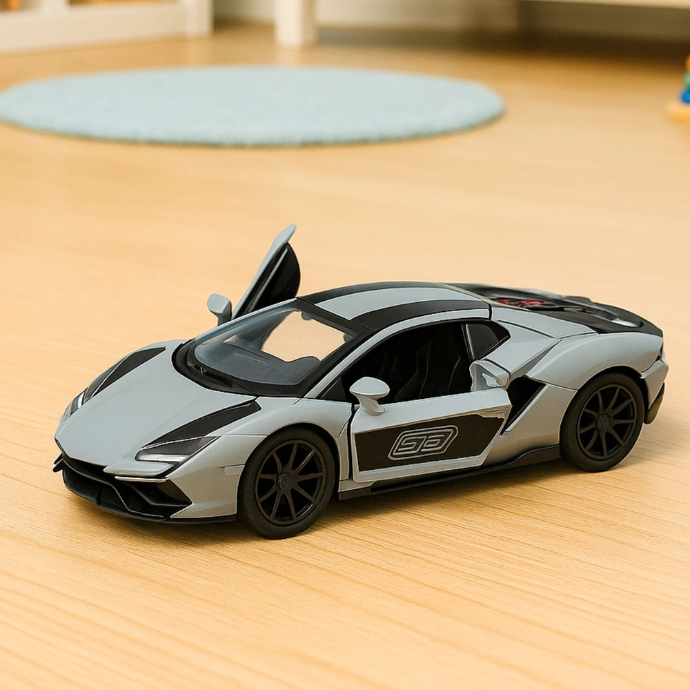 This realistic 1:32 scale racing car model is crafted with attention to detail. The metal body ensures durability for everyday play, while the functional opening doors boost authenticity and fun. Thanks to the pull-back drive, you can stage home races and watch the car speed forward after a quick pull.
