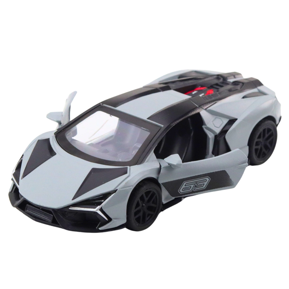 A stylish metal racing car in 1:32 scale delights both young and adult fans of fast wheels. It offers a durable metal body, opening doors for more realistic play, and a thrilling pull-back drive—just pull back, release, and race. Compact dimensions and a sporty design in grey with black details make it an ideal toy and a collector’s piece.