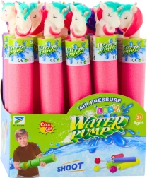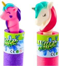 The hand-pump water blaster is made from soft foam for a comfortable grip and safe play, even for younger children. Simply dip the tip in water, pull back, and then shoot a powerful stream—no batteries or complicated maintenance required. The colorful unicorn figure on the handle adds a magical look and encourages group play.