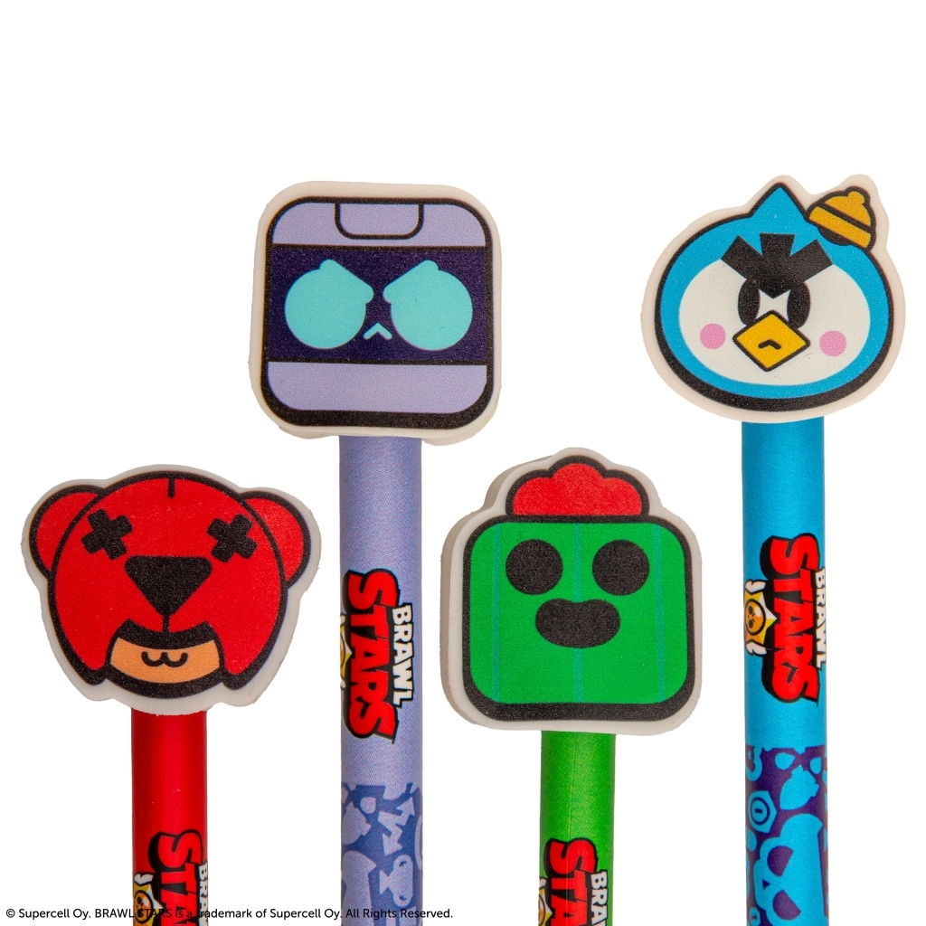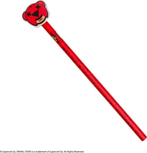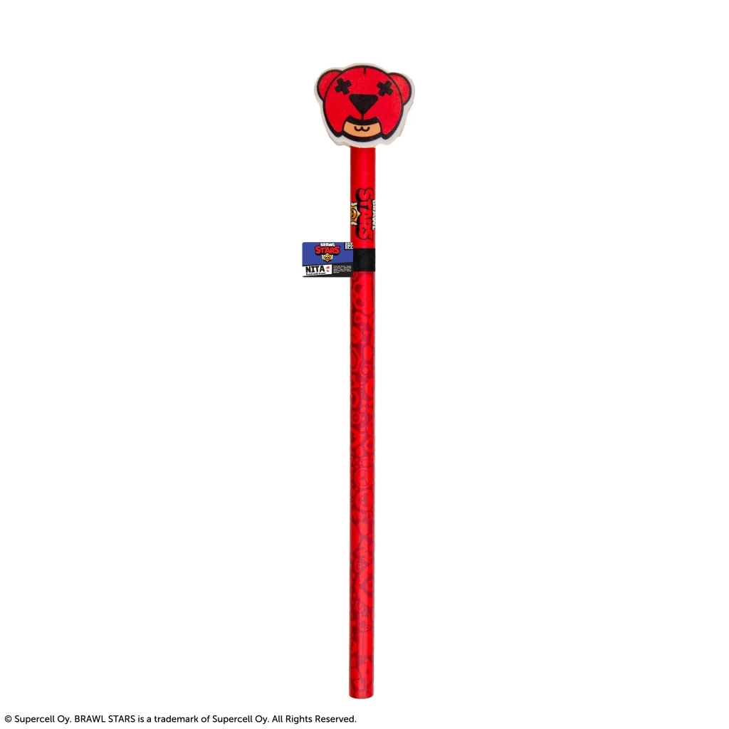 This licensed BRAWL STARS pencil in bright red combines a practical writing tool with a playful collectible design. On top sits a large bear-head eraser, the iconic symbol of Nita, accented with detailed black elements for maximum visual impact.