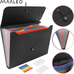 Keep your papers organized with the practical MAALEO A4 accordion folder featuring 13 compartments. The durable water-resistant material, index tabs for quick lookup, and a secure elastic closure make this organizer a reliable helper for the office, school, and home.