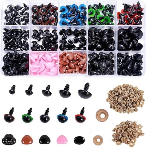 This versatile set combines eyes, noses, and locking washers, allowing you to attach parts to fabric or knits easily and safely. Ideal for mascots, toys, dolls, and other DIY projects. Everything is neatly arranged in a practical plastic box for easier storage and sorting.