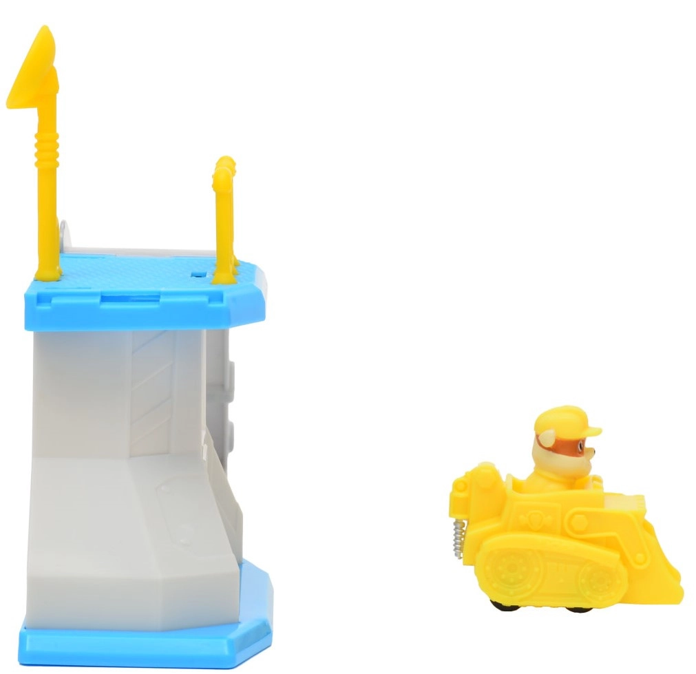 Includes a yellow bulldozer with an integrated Rubble figure — perfect for quick launches from the platform and PAW PATROL storytelling.