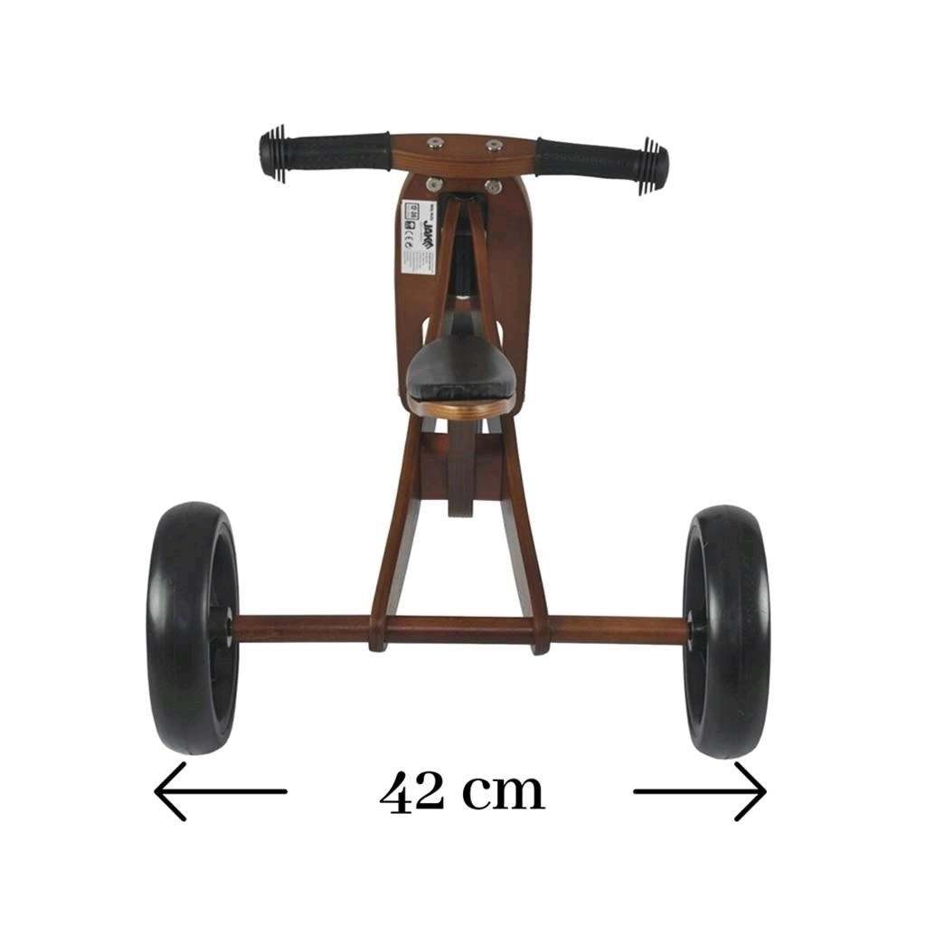 The 2-in-1 MILLY MALLY Jake balance bike is an ideal choice for children aged 18 to 36 months who are learning to ride. With a simple switch from tricycle to two-wheel balance bike, your child gradually learns to keep balance and moves toward independent riding. The lightweight and stable wooden construction with foam wheels requires no maintenance and is gentle on floors.
