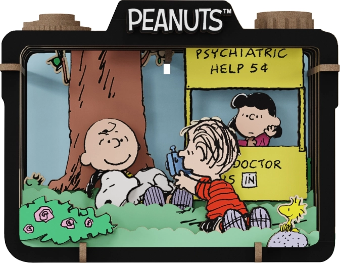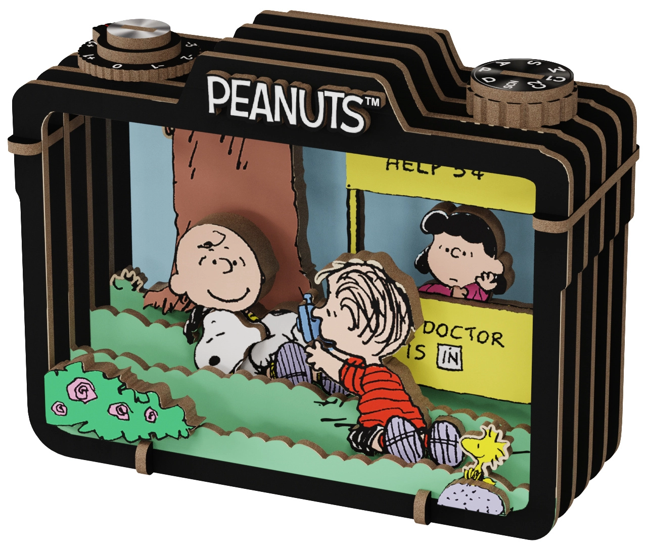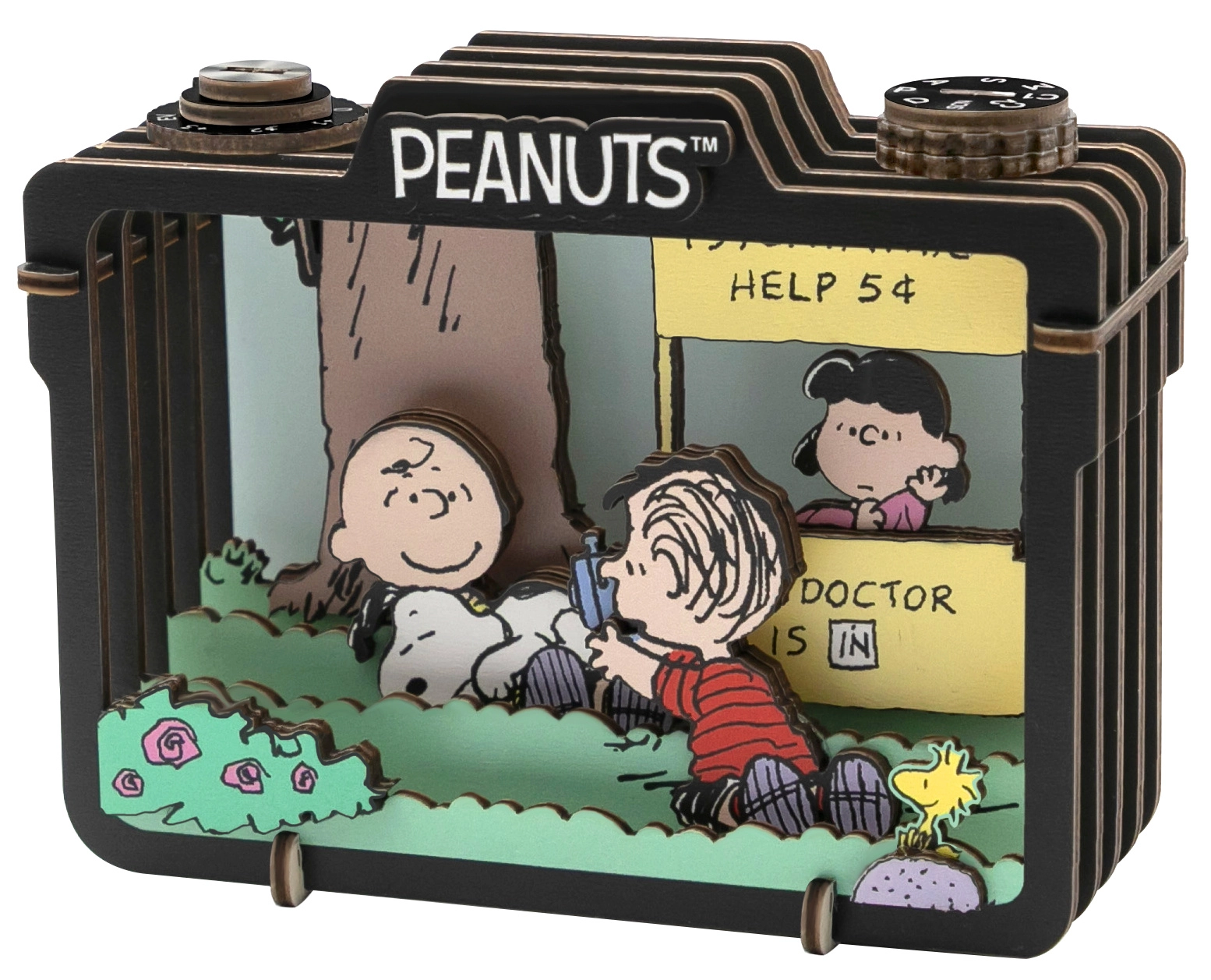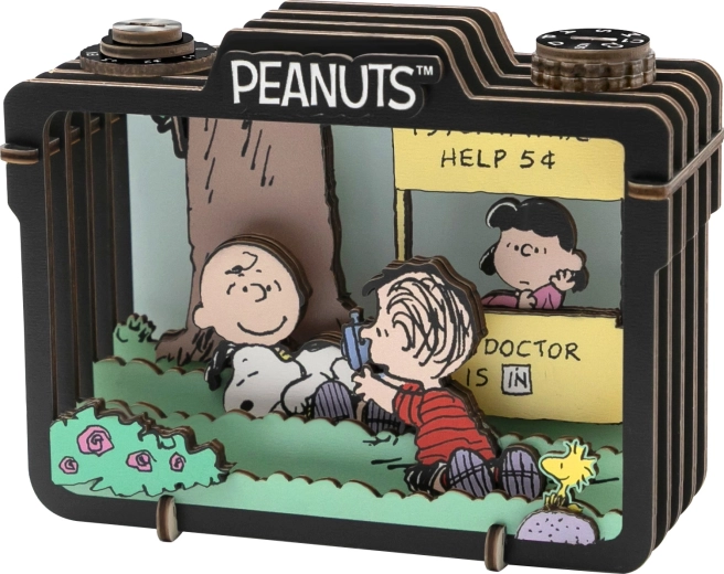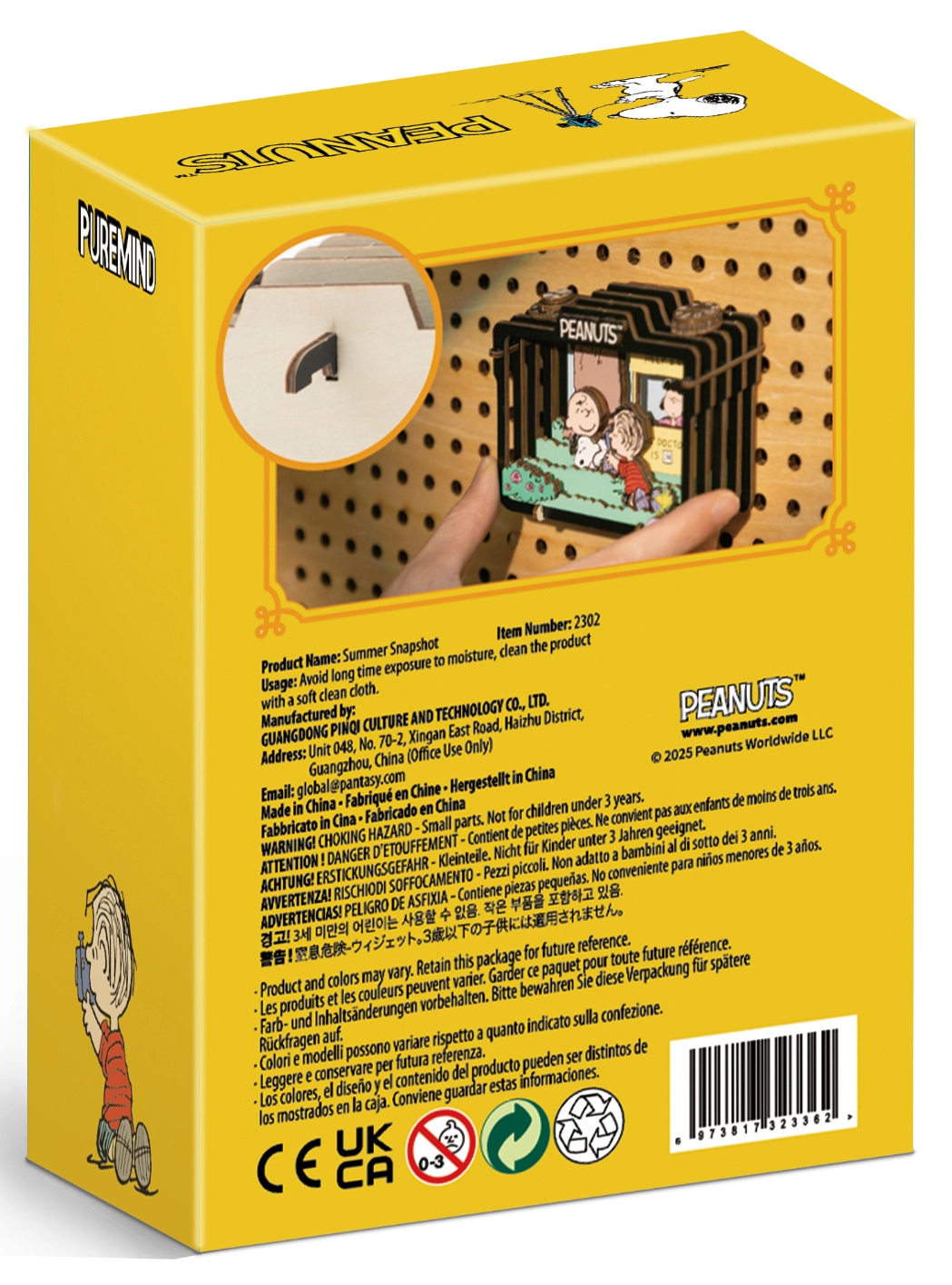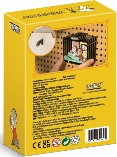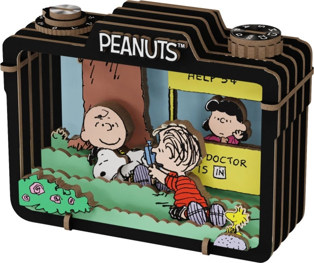 Build a charming wooden 3D scene from the world of PEANUTS. This creative DIY model shaped like a retro camera captures Snoopy and friends in a summer snapshot. Precisely cut wooden layers, a licensed design, and a great choice both for building and for decorating a shelf or desk.