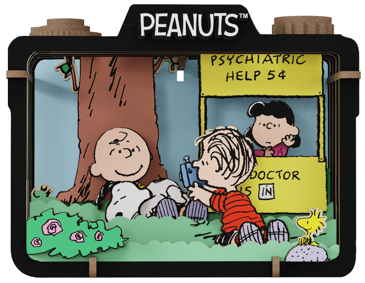Discover the joy of making with the PUREMIND collection: the licensed wooden model PEANUTS – Summer Snapshot delights Snoopy fans and lovers of stylish decor alike. The scene is designed as a retro camera with multi-layer depth that makes the characters and sunny details pop.