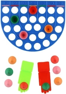 An iconic skill game where accuracy and finesse are key. Each player has four attempts with caps of different colors and tries to flick them into the holes in the game board. You can adjust the distance from the ramp to the target based on players' abilities — keeping the game fair and exciting for the whole family.