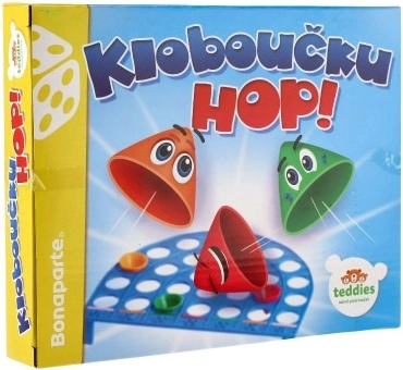 The board's stripes are marked with points, and when a cap drops into a hole in a stripe of the same color, the score is doubled. The rules are intuitive, so you can start playing right away. Kloboučku, hop! develops hand–eye coordination, fine motor skills, and focus, and will entertain for long stretches.