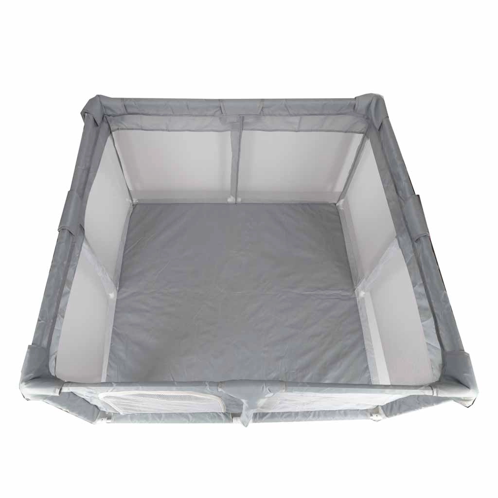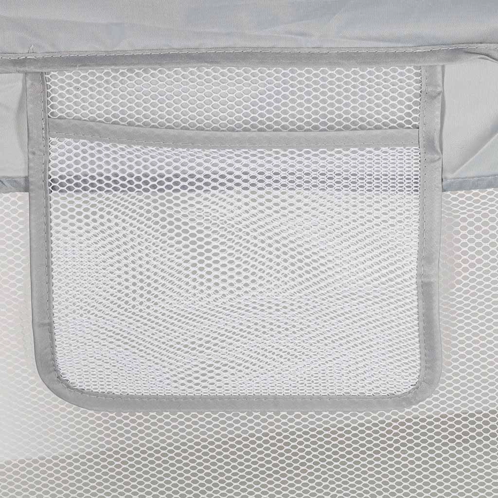 Mesh side panels improve supervision and ensure excellent ventilation. Soft padding on the top edges increases safety.