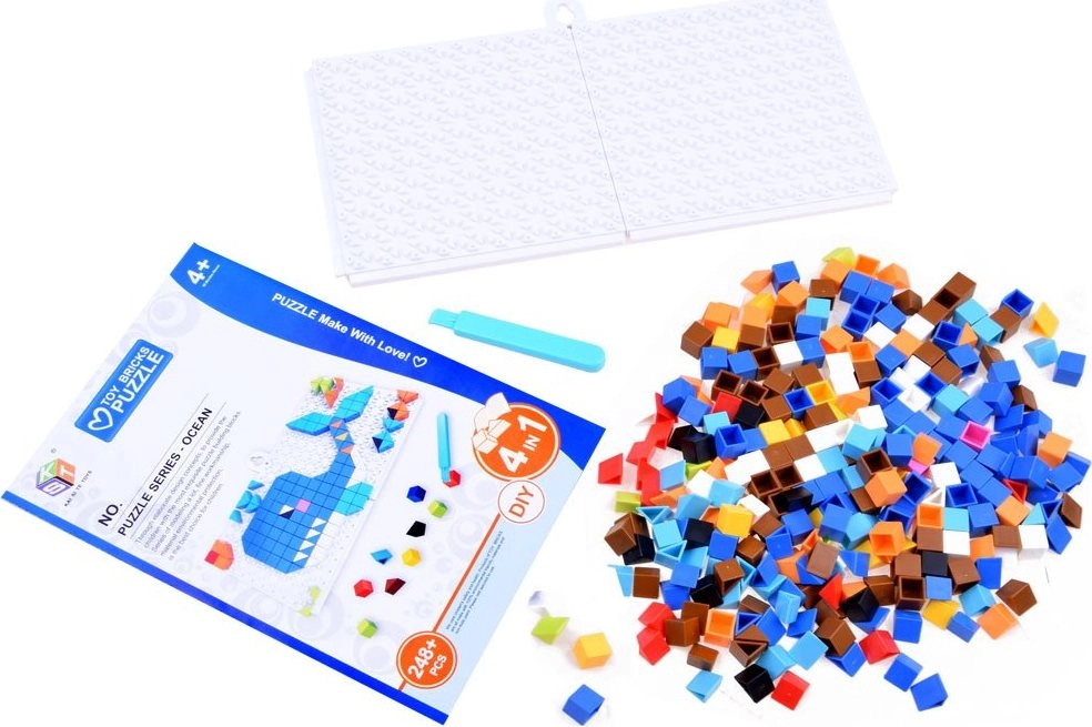 Discover a fun creative kit for kids to easily make colorful pixel pictures with ocean themes and their own designs. With more than 248 pieces, two base plates, and a handy spatula for easy tile removal, this mosaic develops fine motor skills, creative thinking, and color recognition.
