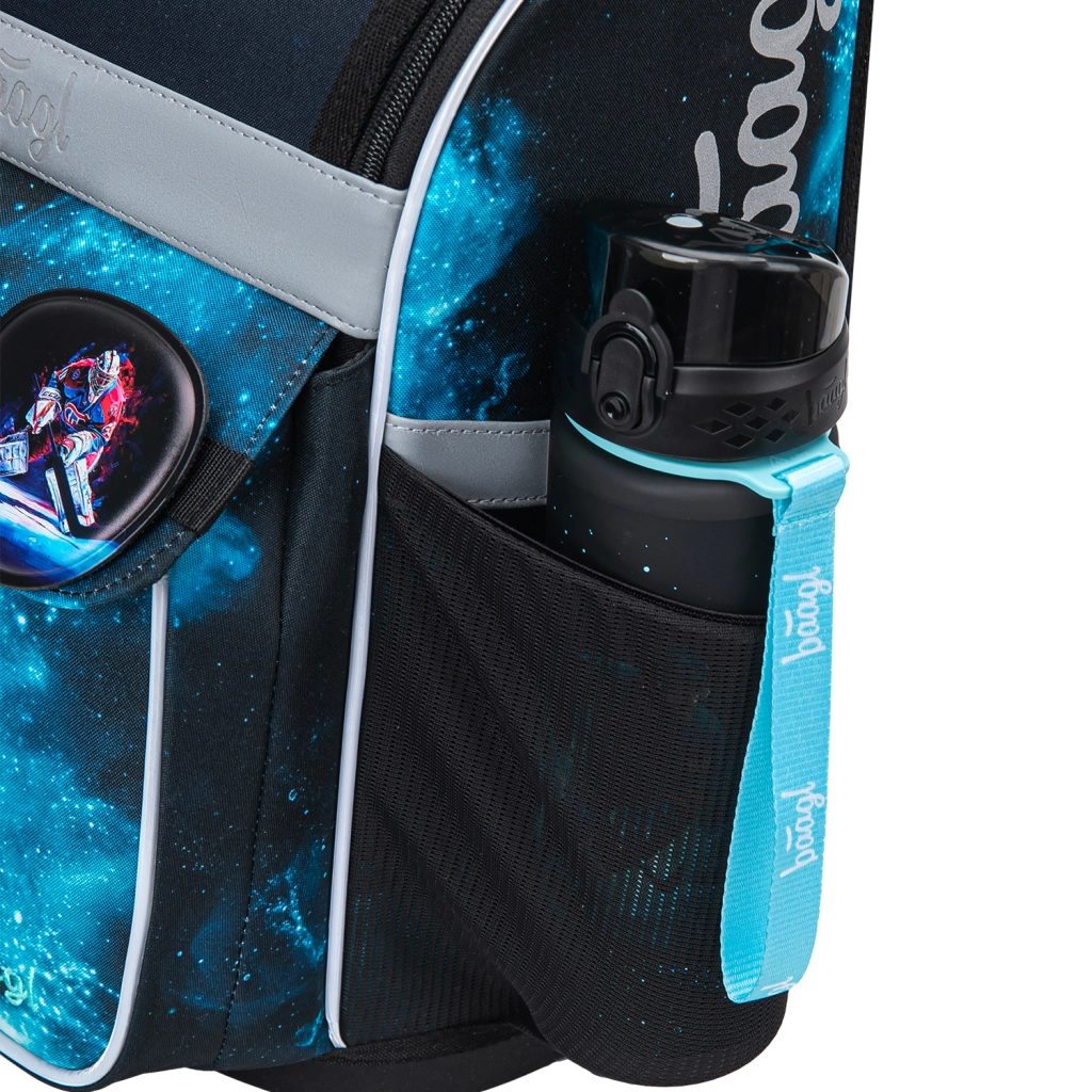 The lightweight, ergonomic BAAGL Zippy school satchel with a hockey motif is ideal for first graders. It offers a adjustable back system, rigid construction, reflective elements, and a practical internal layout for easy organization of school supplies.