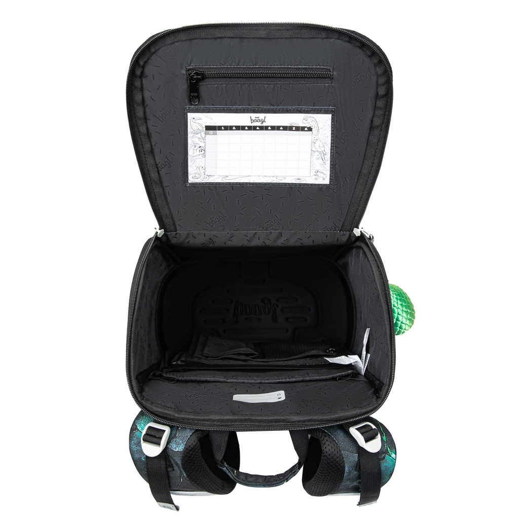 The BAAGL Zippy Dragons school set is designed for comfort, safety, and long-lasting durability in everyday use. The ergonomic school bag with the ERGO ADJUSTABLE sliding system adapts to the child’s build and increases visibility thanks to reflective elements. Practical details like a flip-top opening, an internal elastic strap to secure contents, and sturdy side bottle pockets ensure maximum order and easy access.