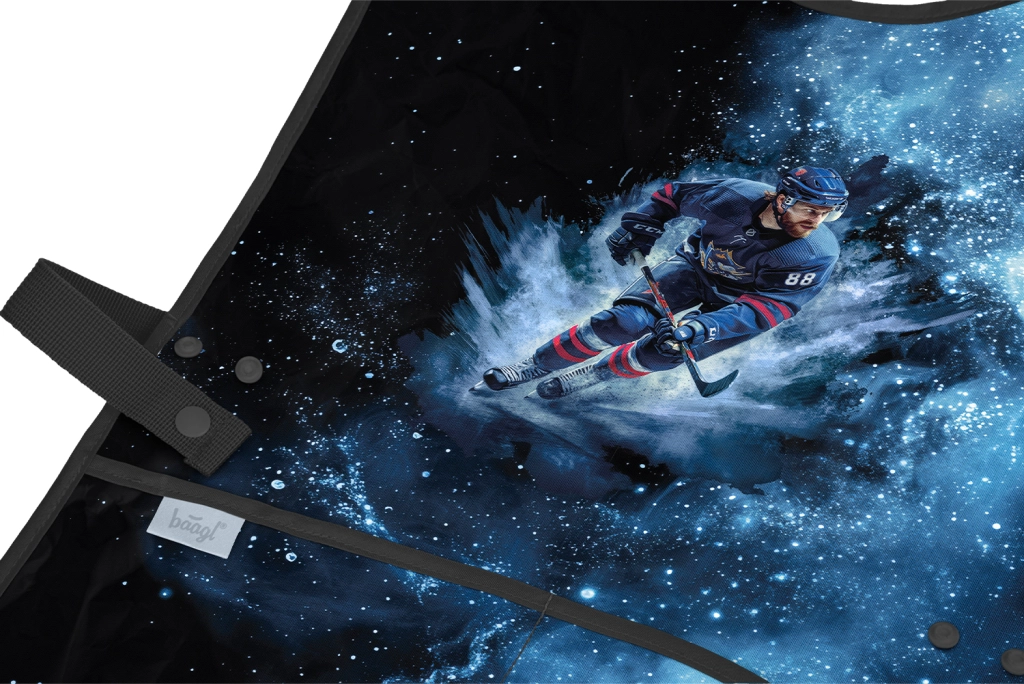 Stylish children's apron with a hockey motif, ideal for school and clubs. Thanks to its durable, wipe-clean material, it’s easy to keep clean and protects clothing from paints, glues, and minor messes.