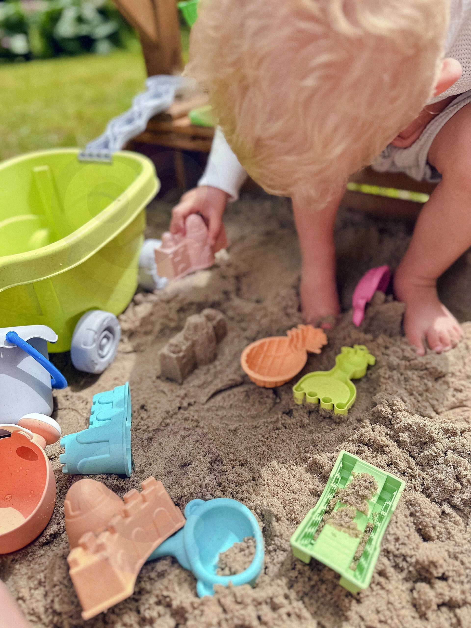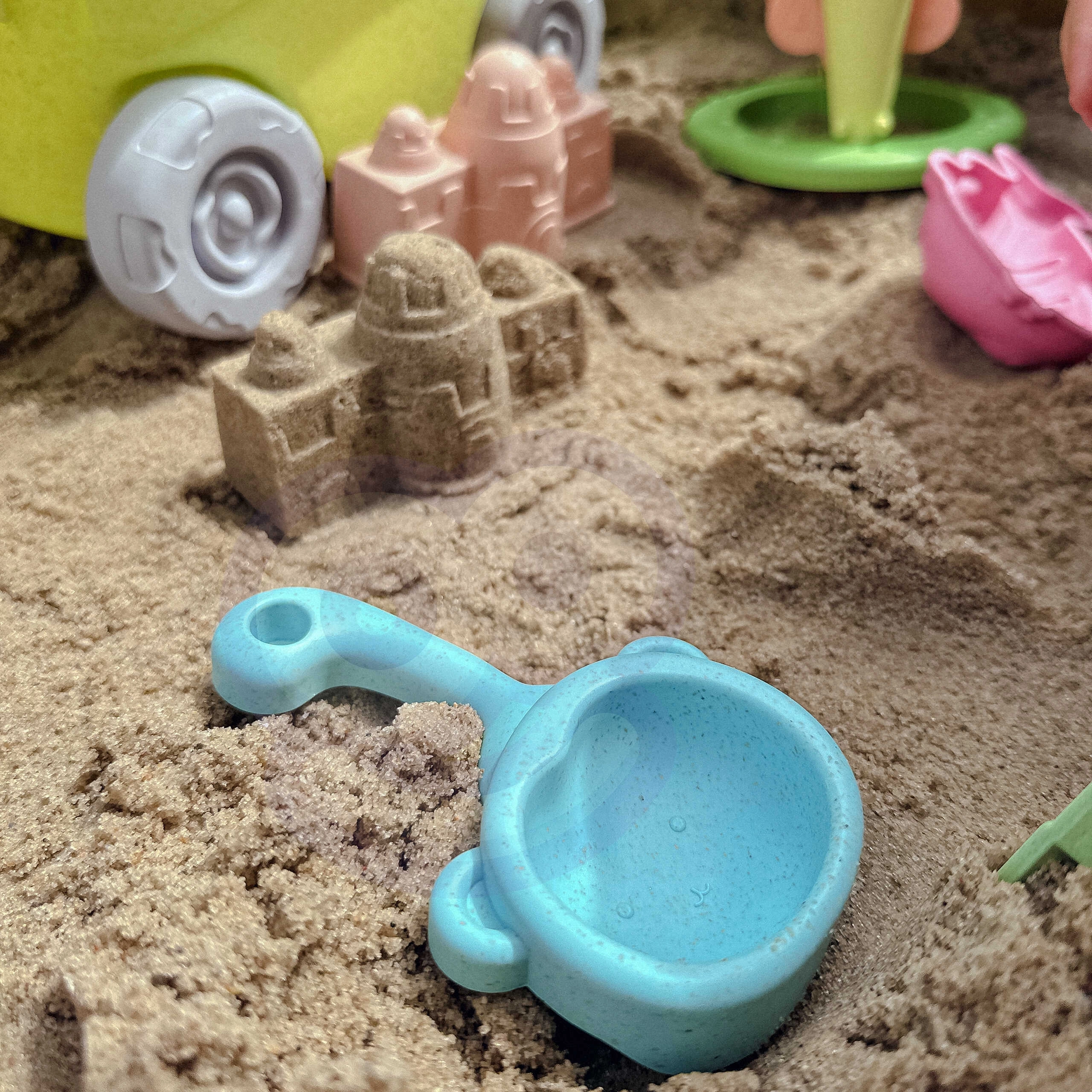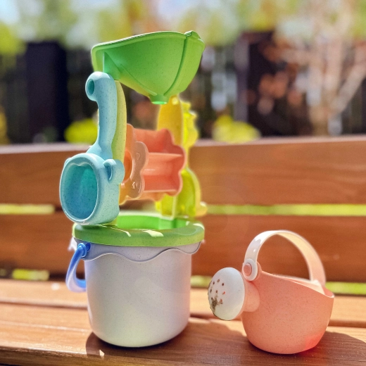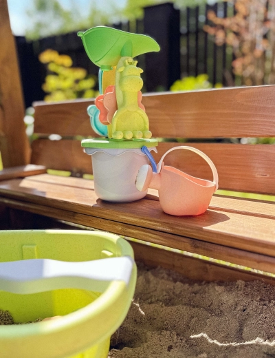 The set is made from organic, biodegradable material and is compostable, making it gentle on nature. Smooth rounded edges and a lightweight build support safe play as well as the development of imagination and fine motor skills.