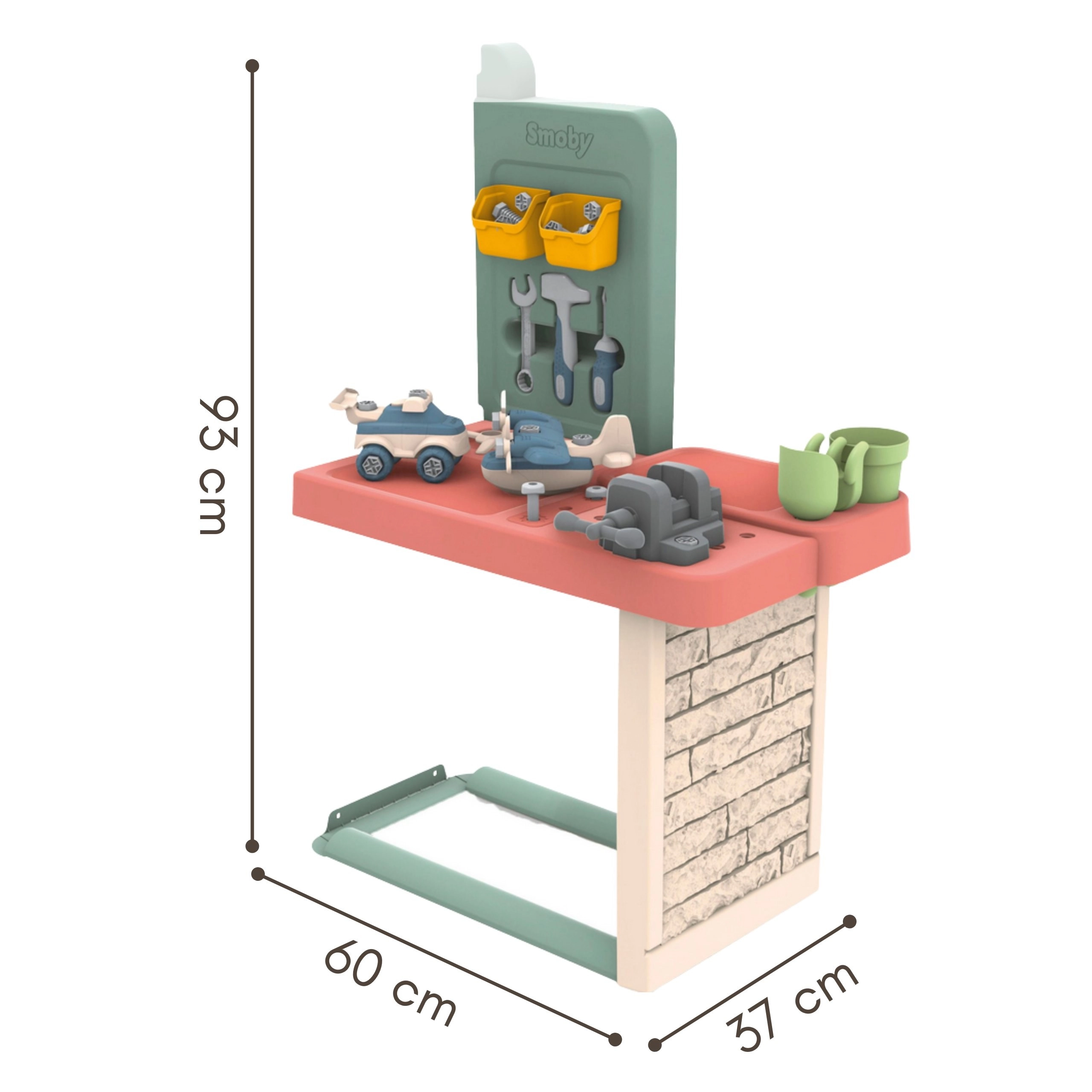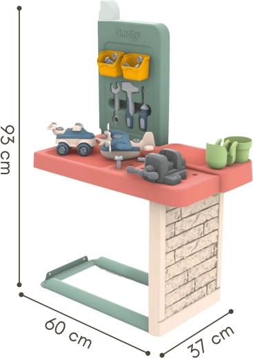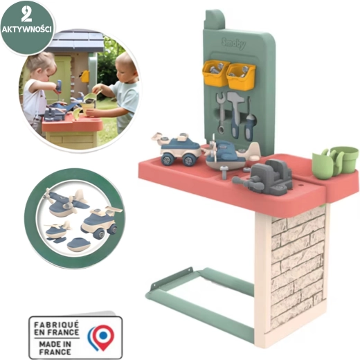 The SMOBY playhouse with workshop is an ideal choice for children from 2 years. It combines a cozy play space with a complete work station where little builders can safely try assembling and creating. Thanks to durable materials and UV protection, it keeps its colors and shape for many seasons.