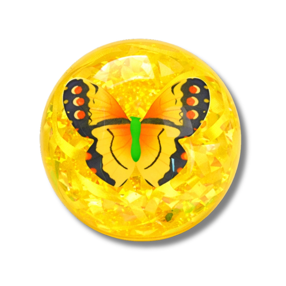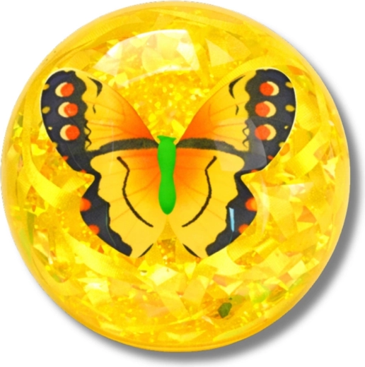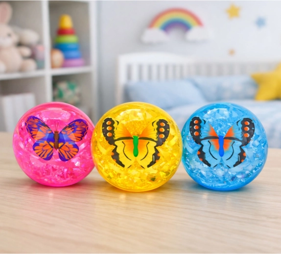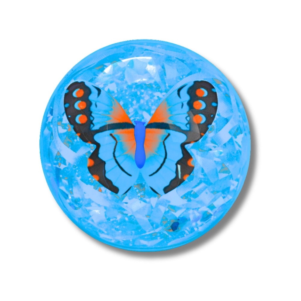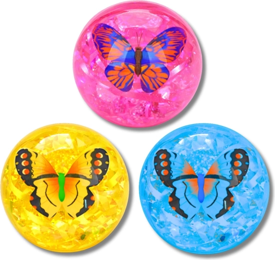 A fun light-up bouncy ball with a transparent design, sparkling confetti, and a decorative butterfly inside. On impact it flashes in multiple colors, bounces great thanks to the elastic rubber, and invites kids to active play indoors and outdoors.