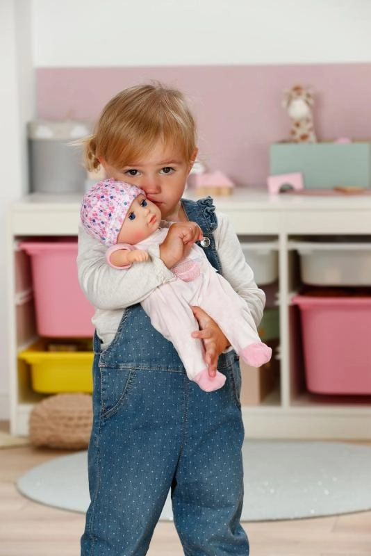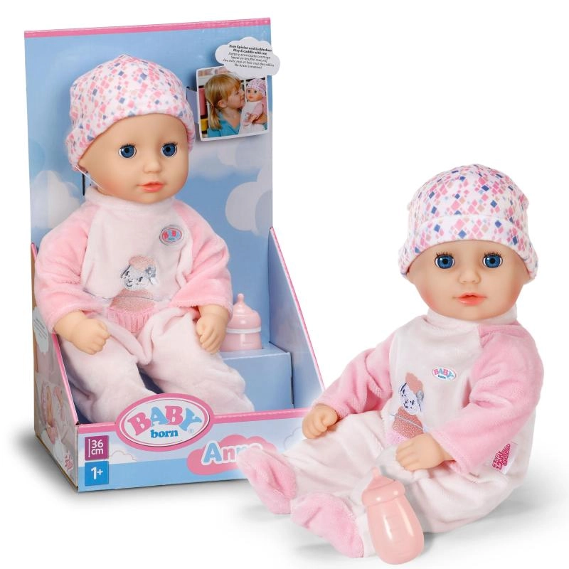 The adorable BABY born Anna 36 cm doll is an ideal first friend for the littlest ones. She has a soft fabric body for cuddling, sleepy eyes for realistic play, and comes with a bottle, romper, and matching hat. Thanks to her compact size, she fits perfectly in small hands and supports fine motor skills and nurturing role-play.