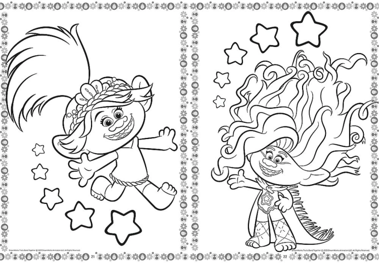Discover a world of color with Trolls coloring pages in a 20 × 27.5 cm format. Each page offers clear outlines for coloring that children can easily manage while encouraging them to create their own color combinations.