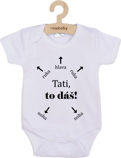 Comfortable baby bodysuit with short sleeves and the original slogan Daddy, you can do it! from the NEW BABY brand. Made from 100% soft cotton that is soft, breathable, and gentle on babies’ sensitive skin. Practical snap fastenings on the shoulder and between the legs make dressing and changing easier. The print colors are certified and safe for babies.