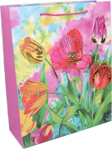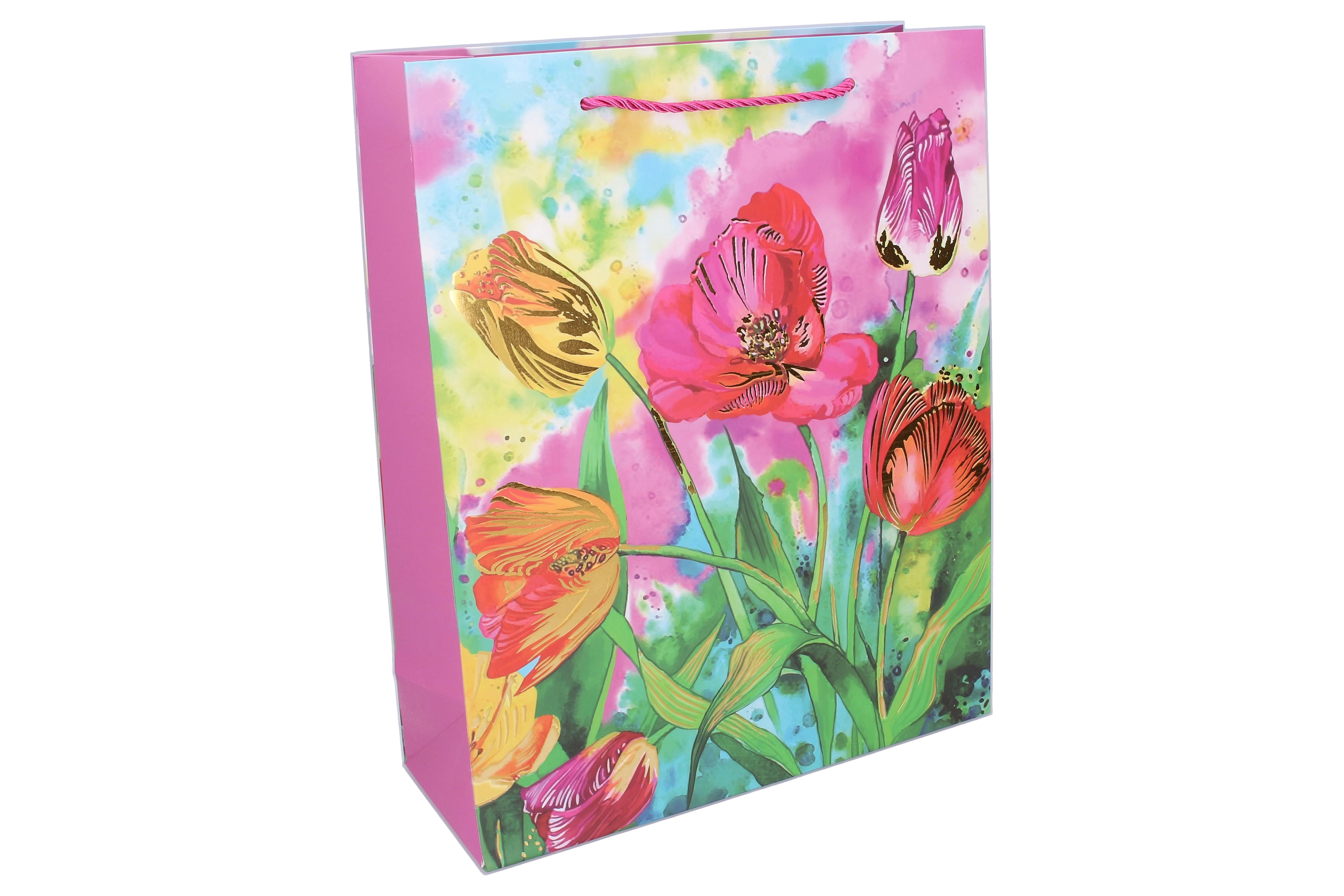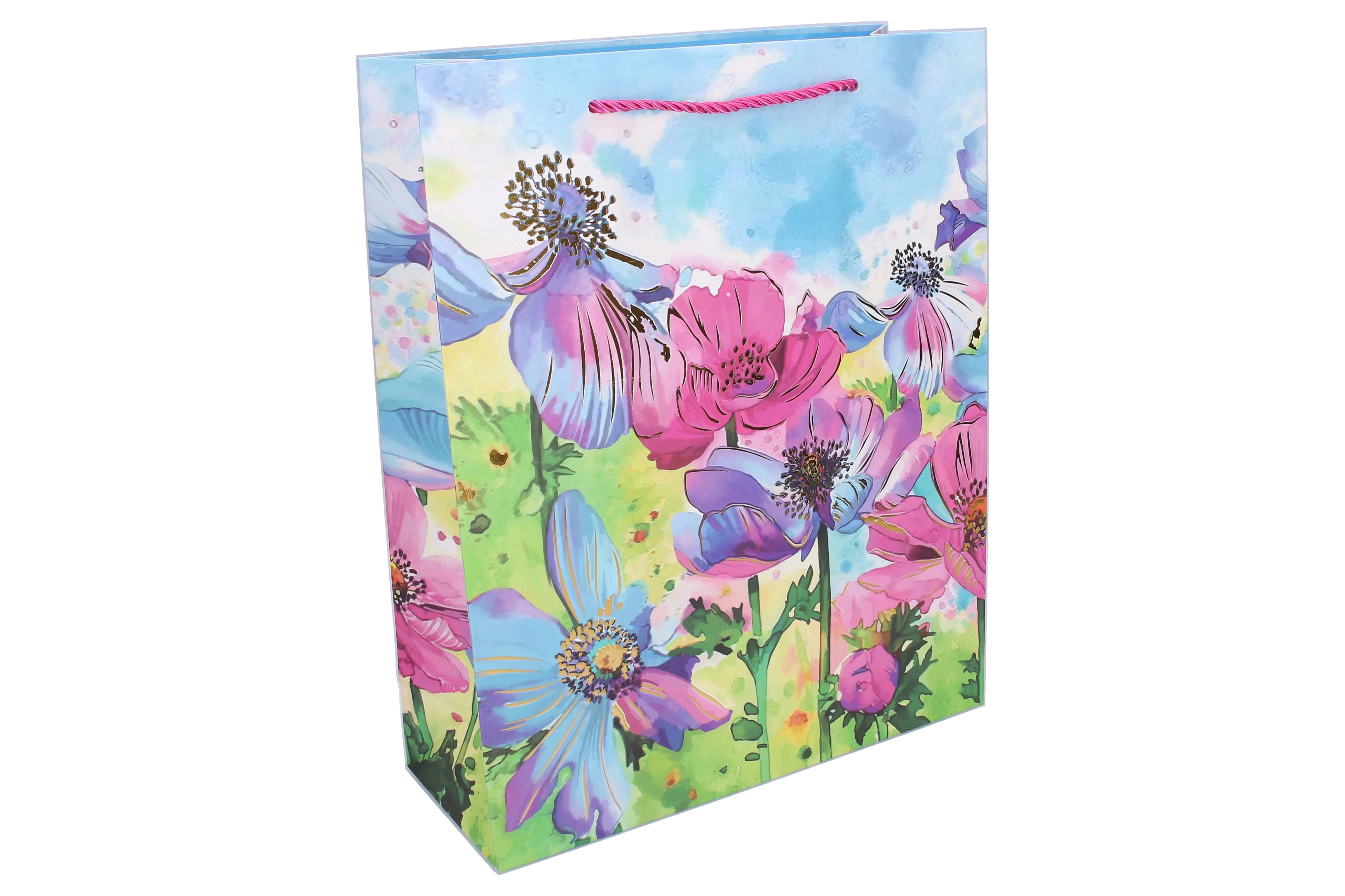 Add flair to your gifts with this quality paper bag in size M. The glossy floral print and sturdy cord handle ensure your gift looks great while being safely carried. Suitable for year-round use—from birthdays and holidays to small tokens of appreciation.