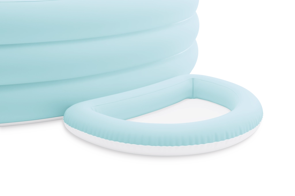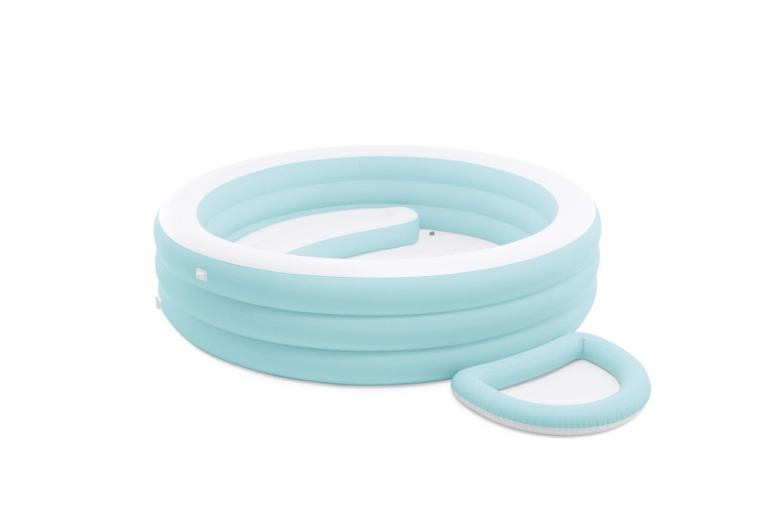 The Swim Center Canopy Lounge inflatable pool delivers comfort and functionality in an elegant light blue design. Three perimeter chambers provide stability and pleasantly soft support, while the integrated inflatable seat and separate foot bath increase comfort for both relaxing and playing.