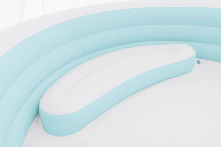 • Comfort: soft inflatable walls, integrated seat, and padded support.