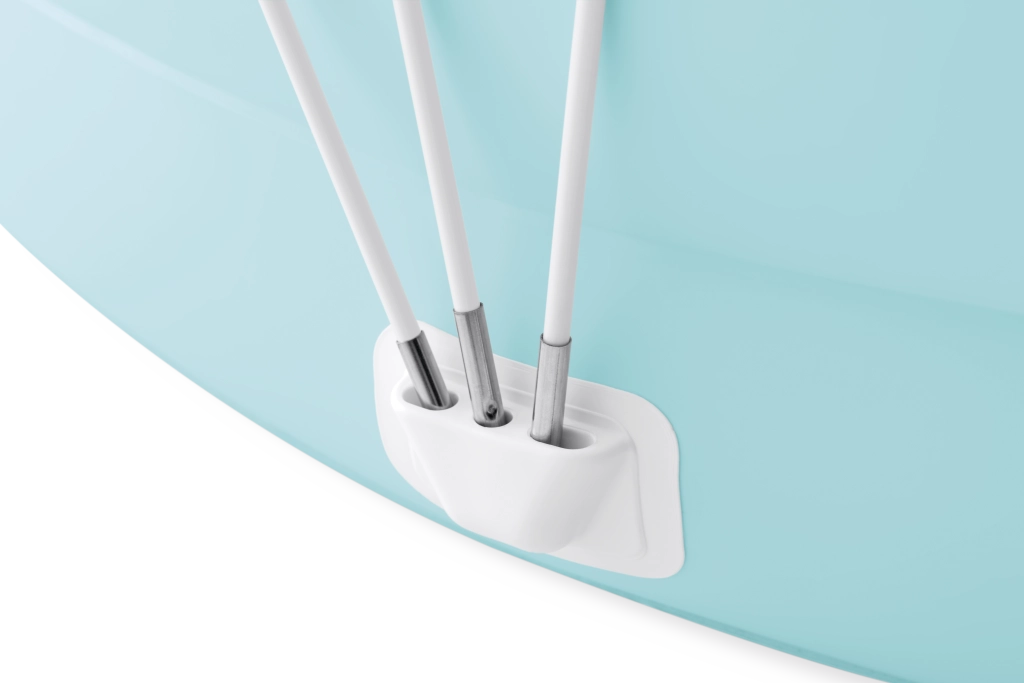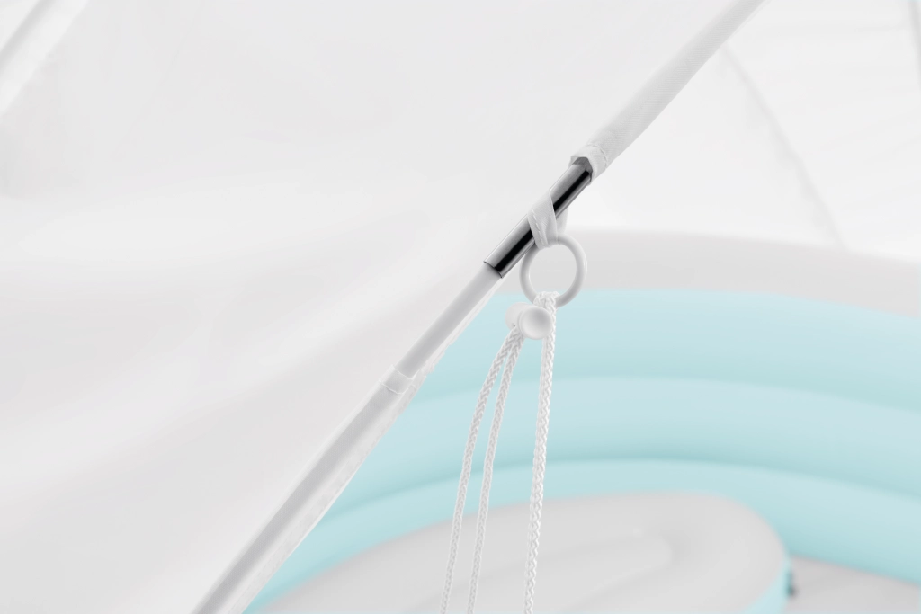 The removable lightweight canopy with UPF 50+ protection offers reliable shade on hot days. Secure mounting using sturdy poles and holders ensures safe use and easy detachment. Thanks to the drain valve at the bottom, draining the water is quick and simple, with no complicated handling.