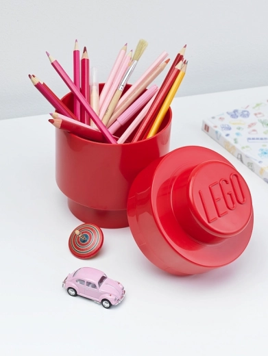 A stylish round box shaped like a LEGO brick, ideal for neat storage of pencils, rulers, bricks, and small toys. Durable polypropylene (PP)free from BPA, phthalates, and PVC