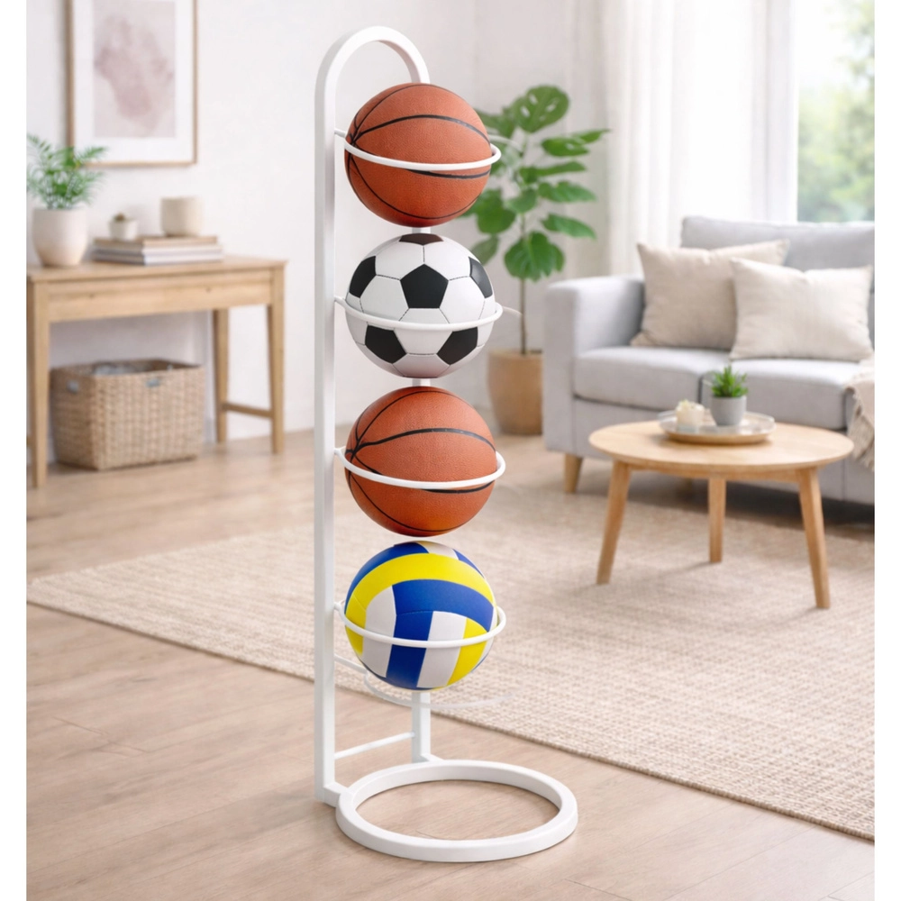 Vertical Metal Ball Stand, White – 4 Levels, Space-Saving
