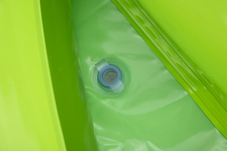 The ribbed surface and inflatable sidewalls increase comfort and confidence while sliding, while the cushioned landing zone softens the splash into shallow water.