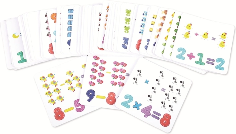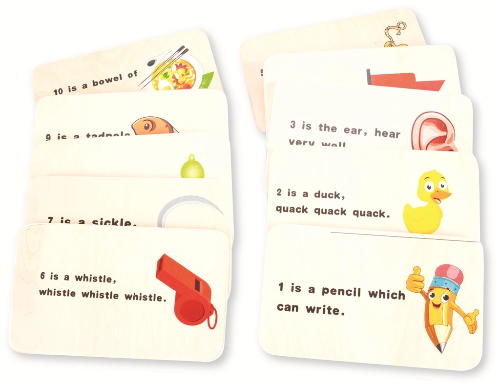 The set includes educational cards with simple English rhymes and colorful pictures that support reading, vocabulary, and understanding of instructions.