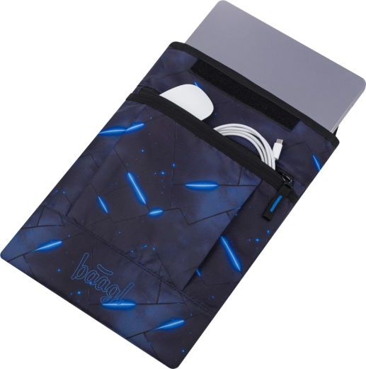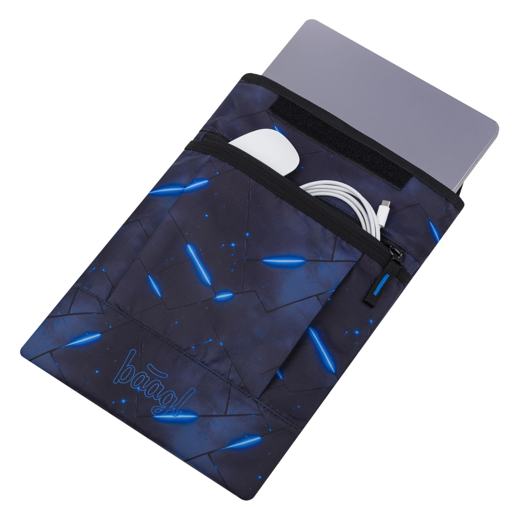 With a range of designs to choose from, you can easily match the sleeve with other BAAGL gear. The front pocket holds a charger, mouse, or cables, so you have everything conveniently at hand. The material meets the Global Recycled Standard (GRS), confirming its environmental friendliness and responsible manufacturing.