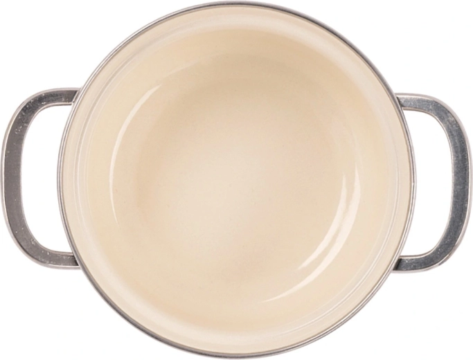 The quality enameled surface is gentle on food and suitable for allergy sufferers. The stainless steel rim and robust handles ensure a secure grip.