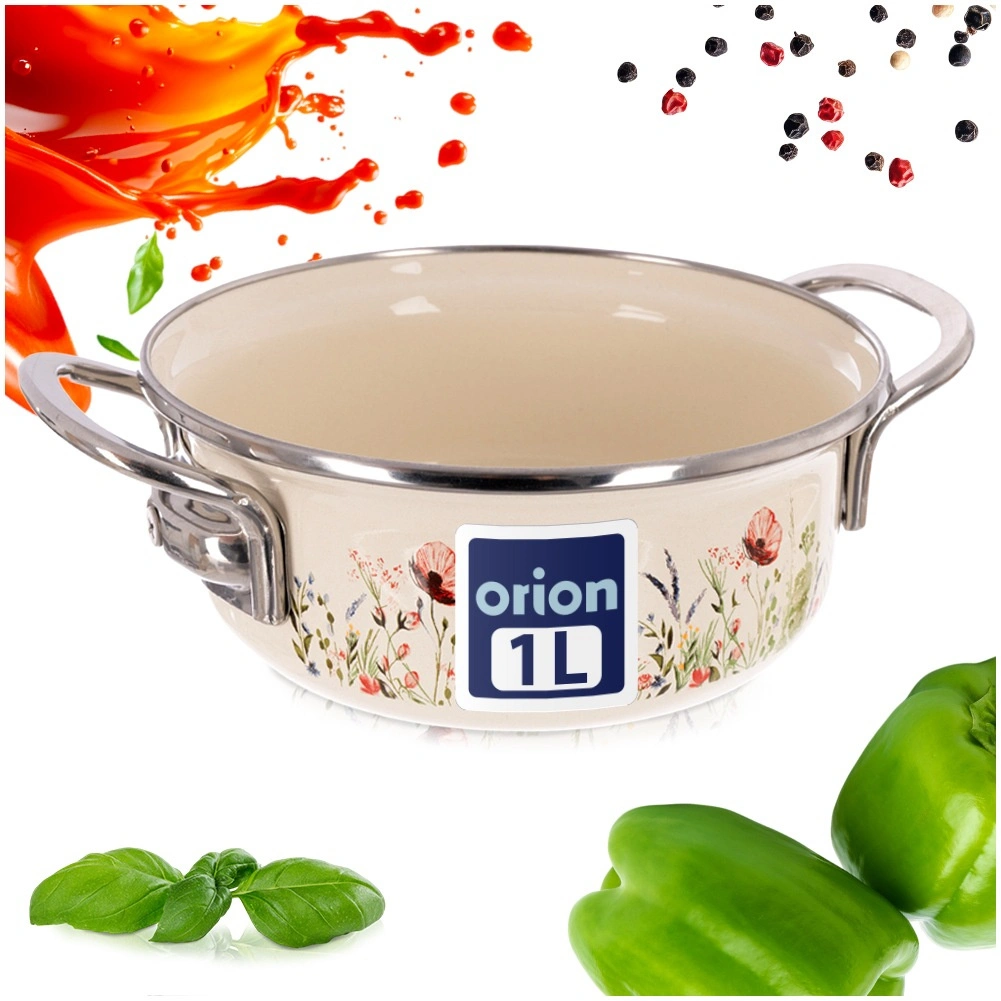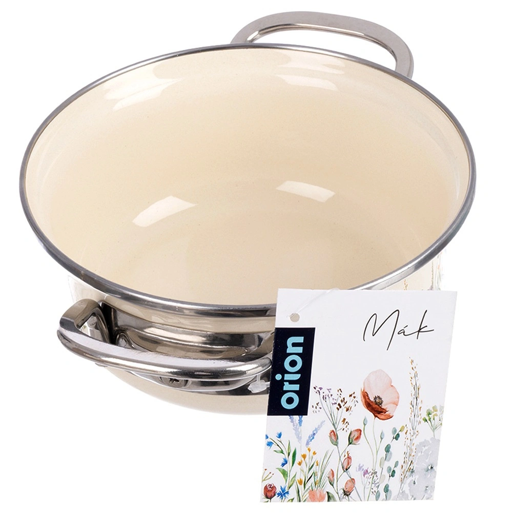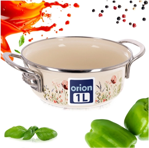 Traditional look, modern functionality. This cream pot with an enameled surface and stainless steel rim distributes heat well, resists corrosion, and is easy to clean. The wildflower decor brings retro charm to your kitchen, while the practical 950 ml size is ideal for sauces, soups, or quick portions for one to two people.