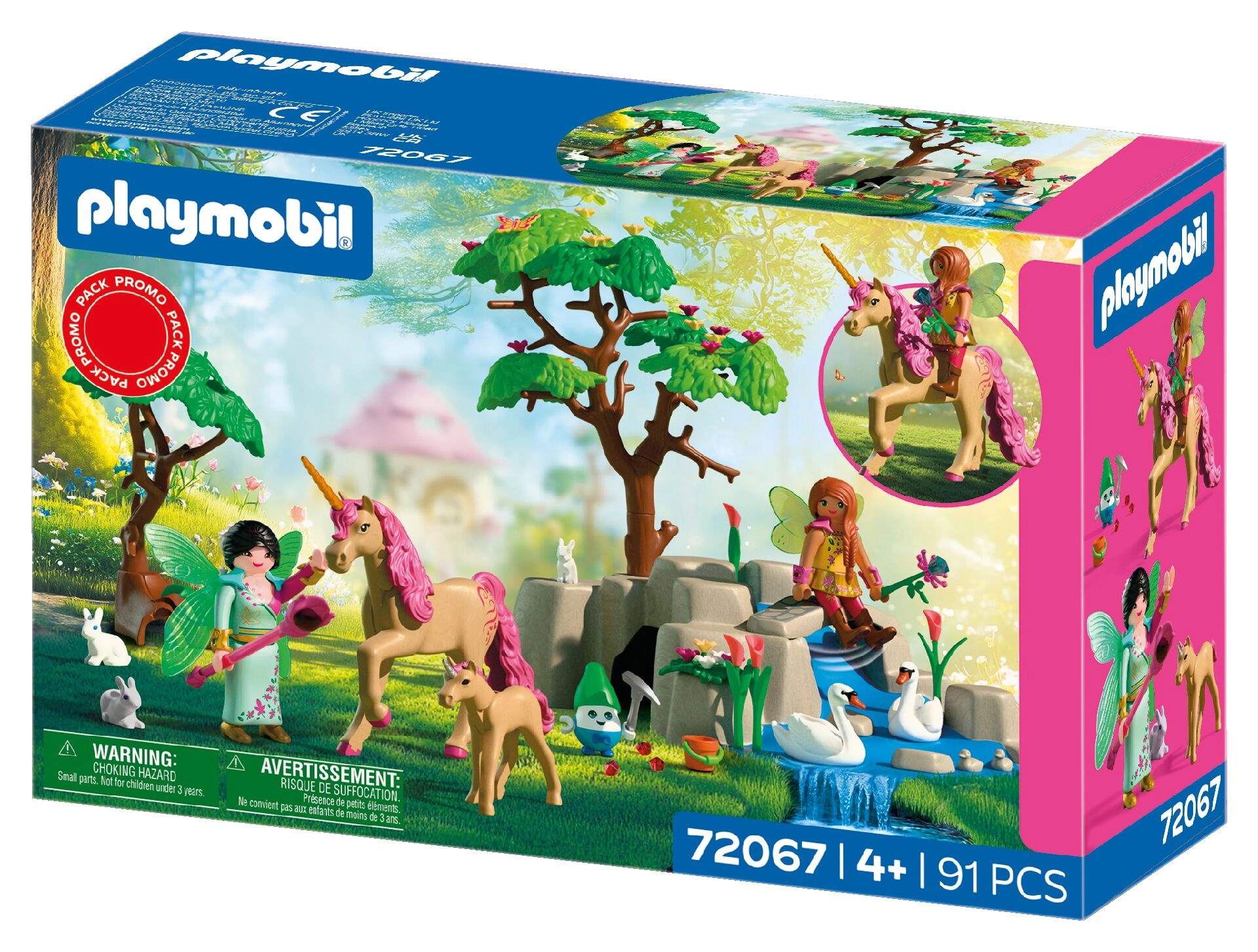 Discover a magical world of fantasy with the PLAYMOBIL set, where two fairies travel with a unicorn and its foal through a picturesque landscape full of animals, flowers, and shimmering treasures. With plenty of accessories, poseable figures, and the option to ride the unicorn, this set offers endless stories and creative play for children aged 4 and up.
