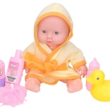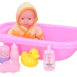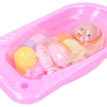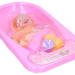 The baby with bathtub set is ideal for little caregivers. The set includes a baby measuring 24 cm and a bathtub 40 cm long, perfect for fun bathing.