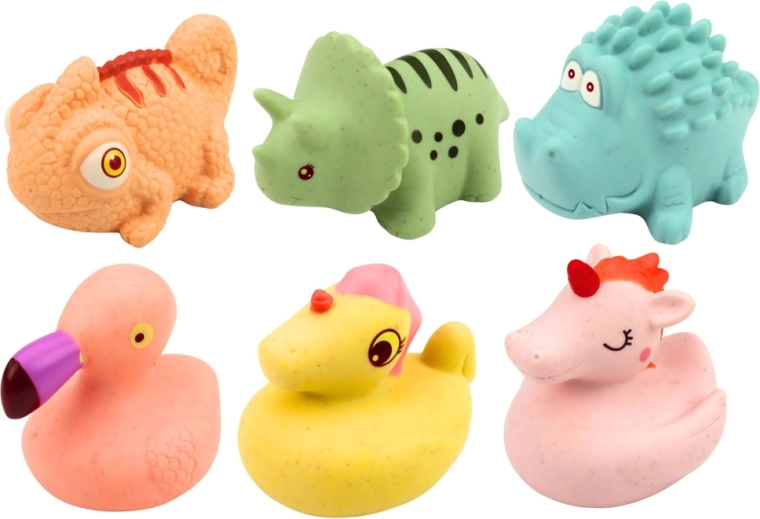 Lightweight, floating animals make play easier in the tub, shower, or paddling pool. Thanks to the soft material, they can be safely squeezed and easily carried.