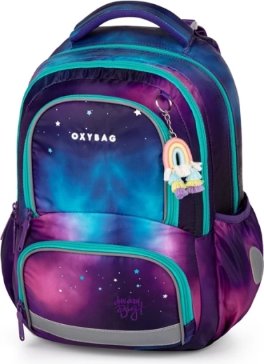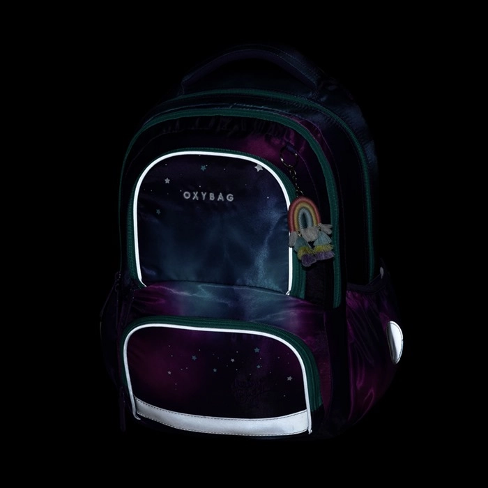 The OXY NEXT Dream school set in a galactic motif focuses on comfort, safety, and perfect organization of school supplies. The backpack is anatomically shaped, with padded shoulder straps and a chest strap for stable, healthy carrying. Thanks to numerous pockets, a key/chip holder, and two roomy side pockets, your child will always keep things in order.