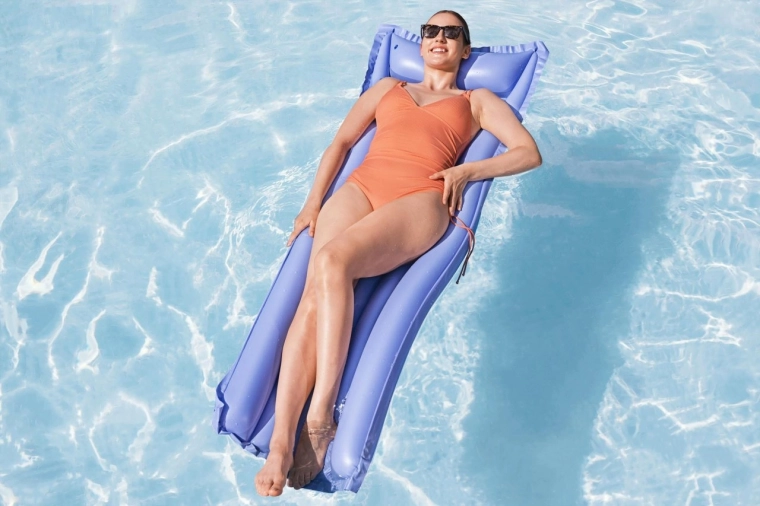 The raised headrest provides natural neck support and pleasant relaxation while floating or sunbathing.